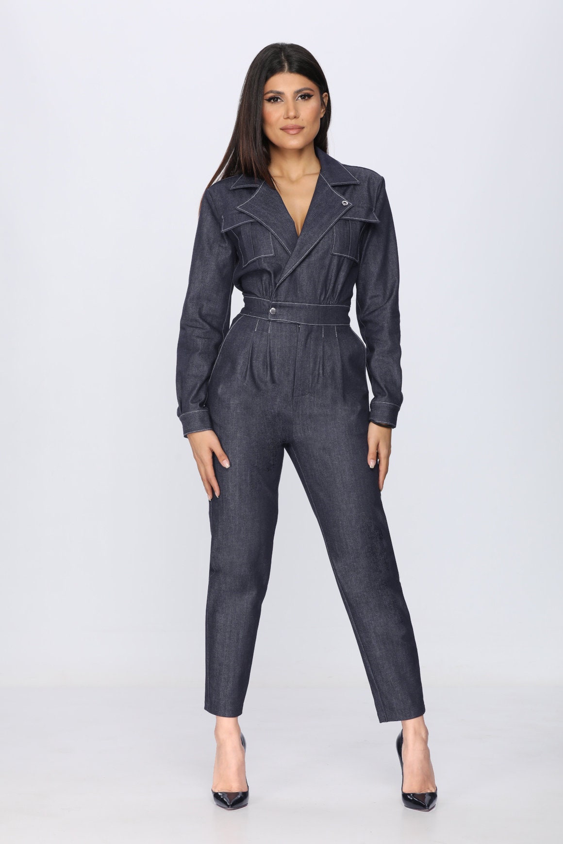 Isabel Tuxedo Denim Jumpsuit Sewing Pattern 34 36 38 40 42 44 Etsy